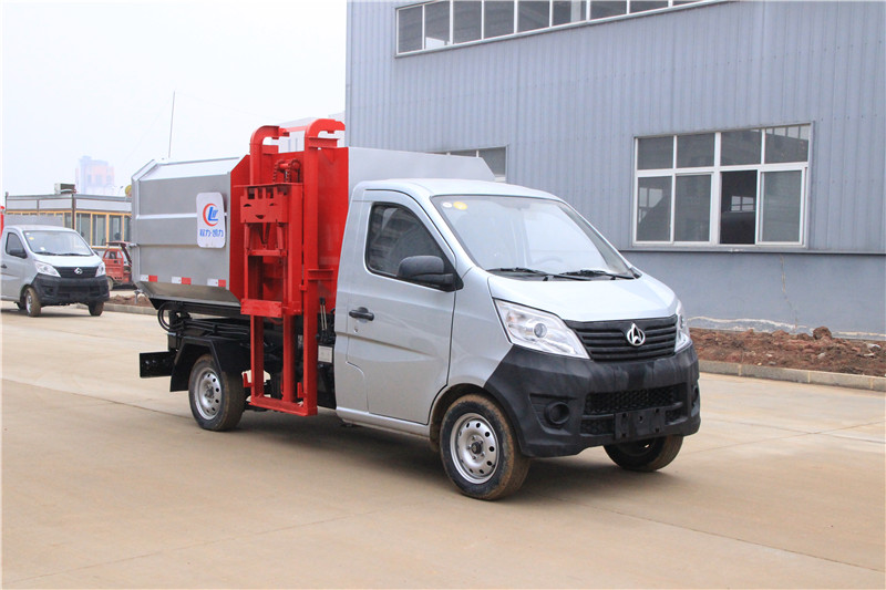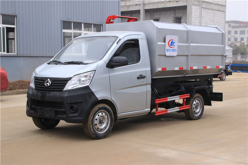 掛桶垃圾車又名自裝卸式垃圾車, 由密封式垃圾廂、液壓系統(tǒng)、操作系統(tǒng)組成。舉升油制缸垃圾廂可自吊上放下,上下一次工作循環(huán)時間≤50s。一輛車可配幾十個垃圾桶,實現一臺車與多個垃圾桶聯合作業(yè),循環(huán)運輸,充分提高了車輛的運輸能力,特別適用于短途運輸,如環(huán)衛(wèi)部門對城鎮(zhèn)垃圾的清理、運輸等。