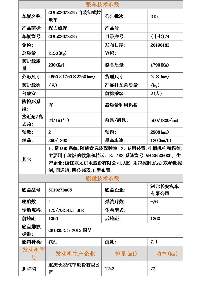 | 長安 3方掛桶垃圾車 售后服務說明 | |