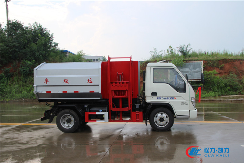 掛桶垃圾車又名自裝卸式垃圾車, 由密封式垃圾廂、液壓系統(tǒng)、操作系統(tǒng)組成。舉升油制缸垃圾廂可自吊上放下,上下一次工作循環(huán)時(shí)間≤50s。一輛車可配幾十個(gè)垃圾桶,實(shí)現(xiàn)一臺(tái)車與多個(gè)垃圾桶聯(lián)合作業(yè),循環(huán)運(yùn)輸,充分提高了車輛的運(yùn)輸能力,特別適用于短途運(yùn)輸,如環(huán)衛(wèi)部門對(duì)城鎮(zhèn)垃圾的清理、運(yùn)輸?shù)?/span>。