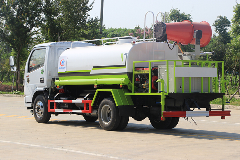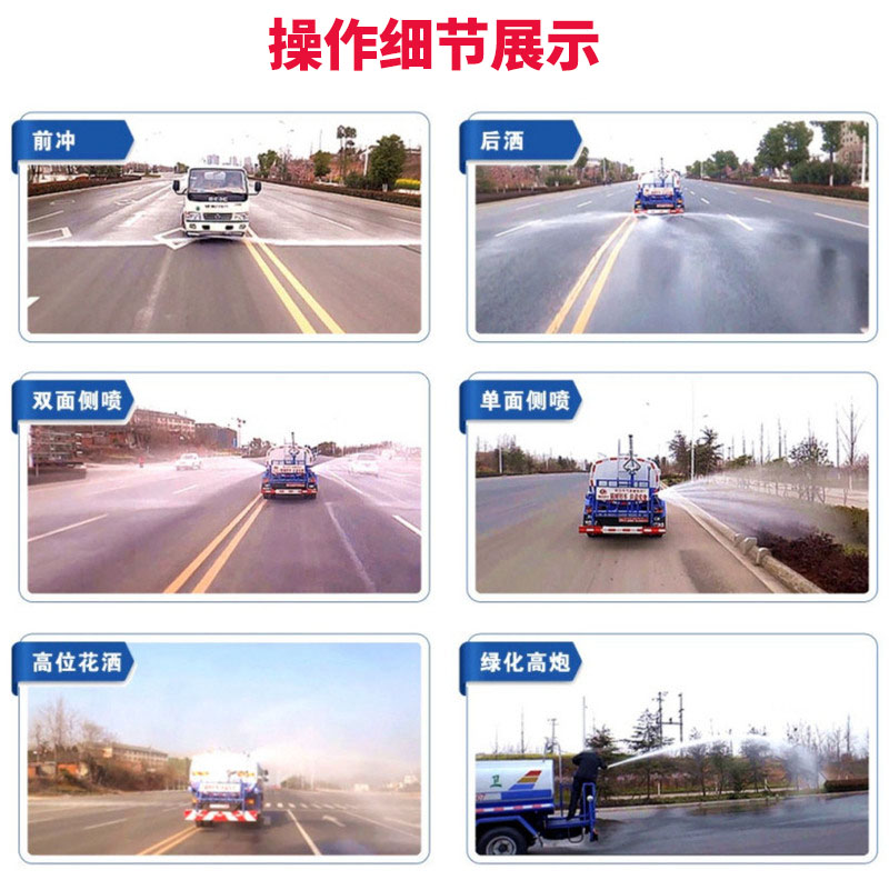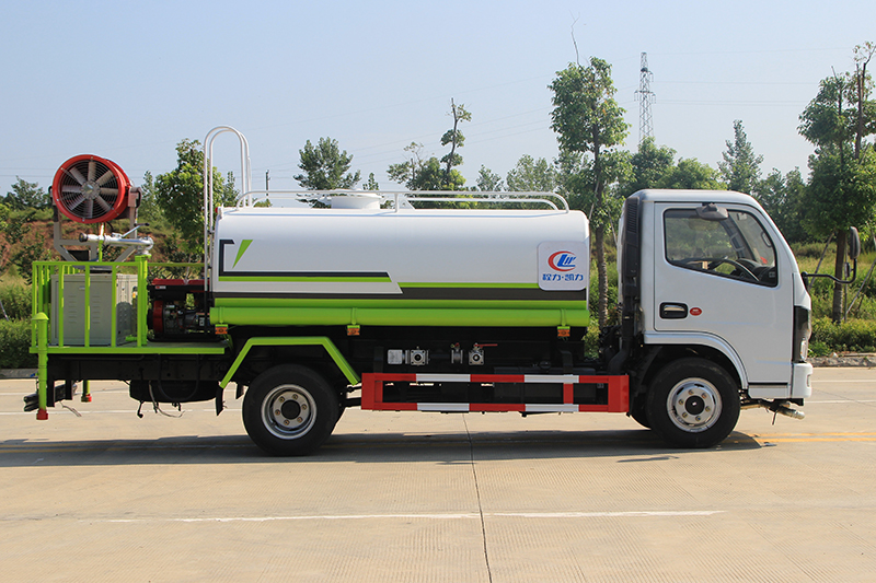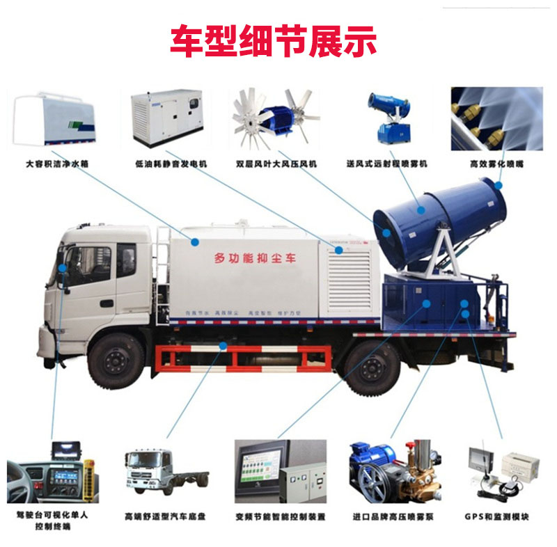 噴霧降塵車,抑塵效果約為普通灑水車的30倍,一臺(tái)噴霧降塵車的工作直徑可覆蓋4個(gè)標(biāo)準(zhǔn)足球場。水箱中的水經(jīng)過霧化后,由高壓風(fēng)機(jī)噴出,水霧顆粒極為細(xì)小,達(dá)到了微米級,其吸附力也增加了3倍,耗水量卻降低了70%,遭遇霧霾天氣、空氣質(zhì)量PM2.5嚴(yán)重超標(biāo)時(shí),進(jìn)行液霧降塵、可分解淡化空氣中的顆粒濃度、將飄浮在空氣中的污染顆粒物、塵埃等迅速逼降地面,達(dá)到清潔凈化空氣的效果。