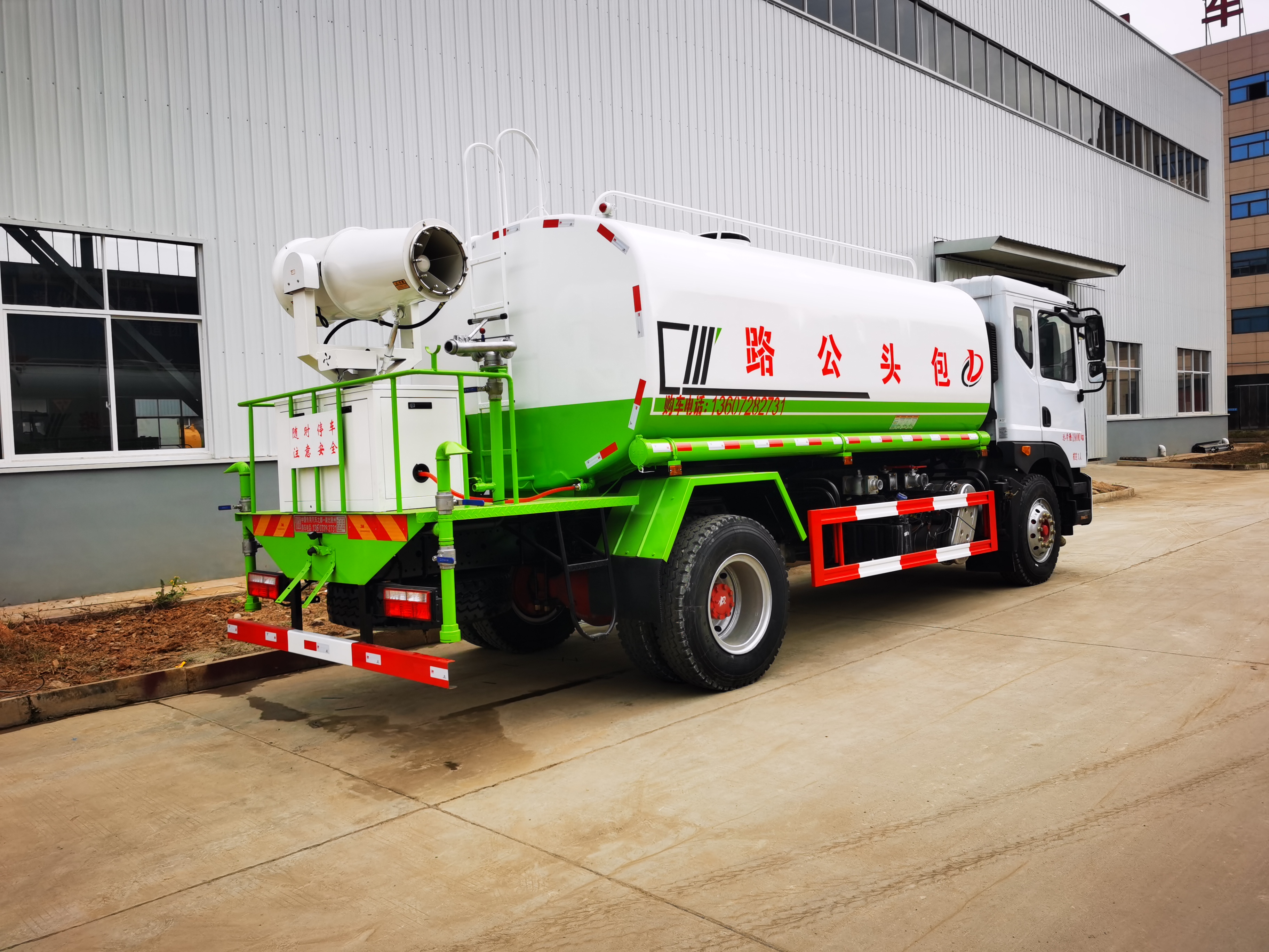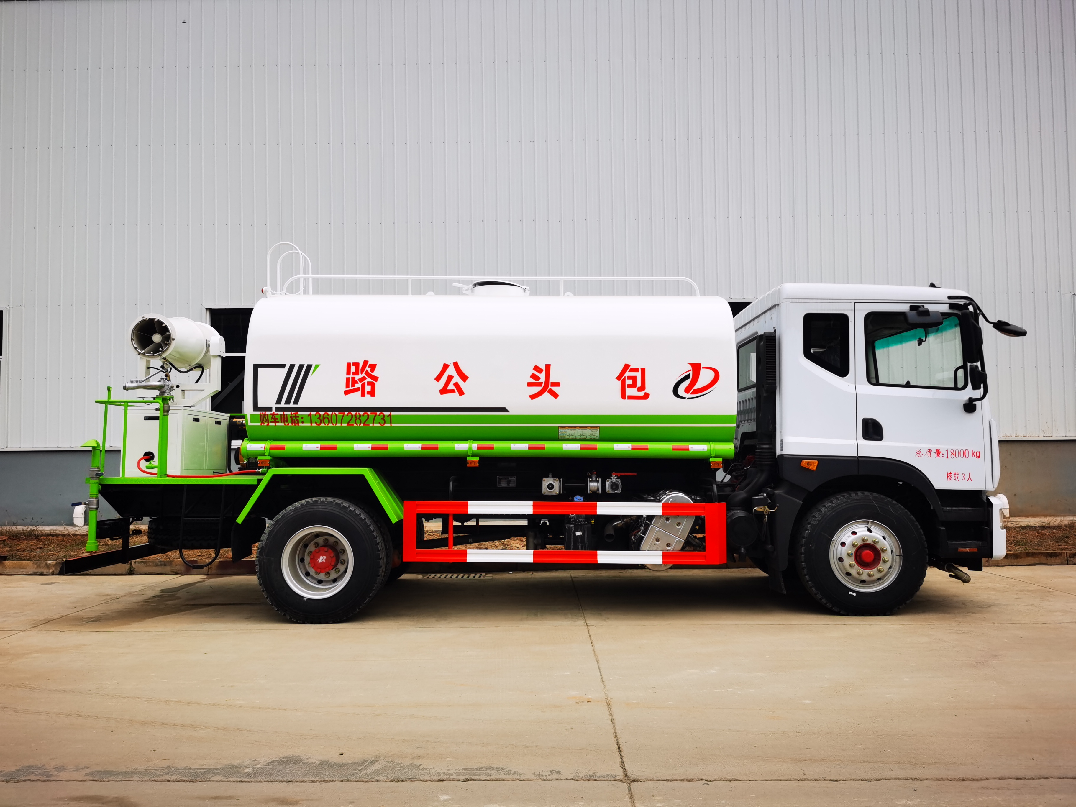 噴霧降塵車工作效率約為普通灑水車的30倍,工作直徑可覆蓋4個(gè)標(biāo)準(zhǔn)足球場。水箱中的水經(jīng)過霧化后,由高壓風(fēng)機(jī)噴出水霧顆粒極為細(xì)小,達(dá)到了微米級,其吸附力也增加了3倍,耗水量卻降低了70%,遭遇霧霾天氣、PM2.5嚴(yán)重超標(biāo)時(shí),進(jìn)行液霧降塵、可將飄浮在空氣中的污染顆粒物、塵埃等迅速逼降地面,達(dá)到清潔凈化空氣的效果。