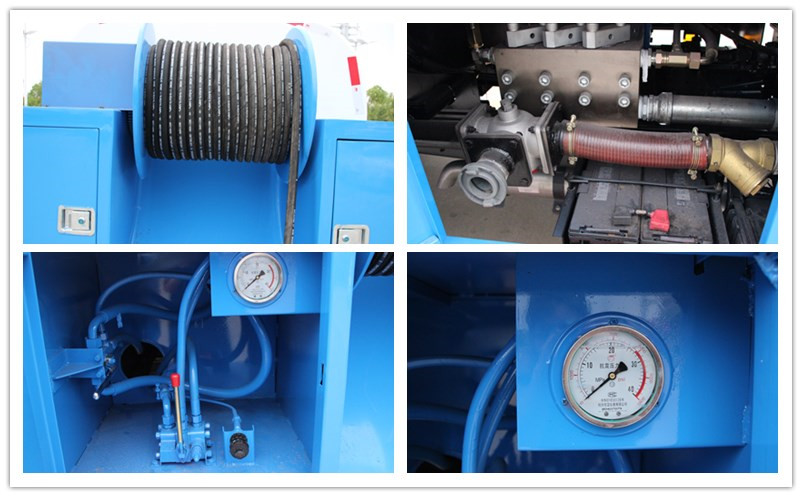 此車還可加裝灑水裝置,安裝綠化灑水炮、前沖、后灑、側噴,可進行綠化灑水、噴霧、壓塵、高壓沖洗路面等,緊急時可用于救火。