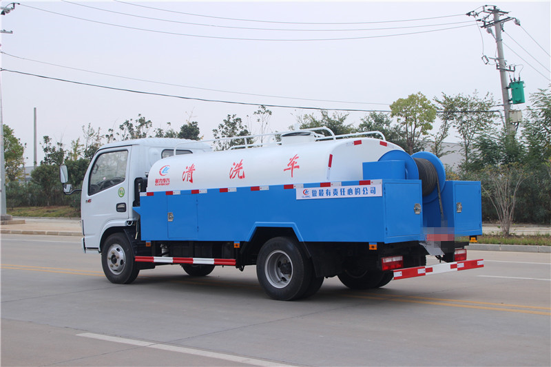 高壓清洗車也稱管道疏通車,通過高壓水流產生的強大壓力沖開被堵塞的管道。主要組成部分為罐體、高壓泵、液壓系統等。高壓清洗車主要用于清洗城市下水道、管道的沉積物、死角泥溝的疏通,也可用于清洗工業(yè)排液管道、壁面等,清洗公路、廣場地面。